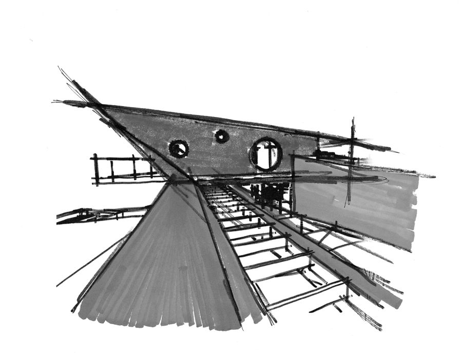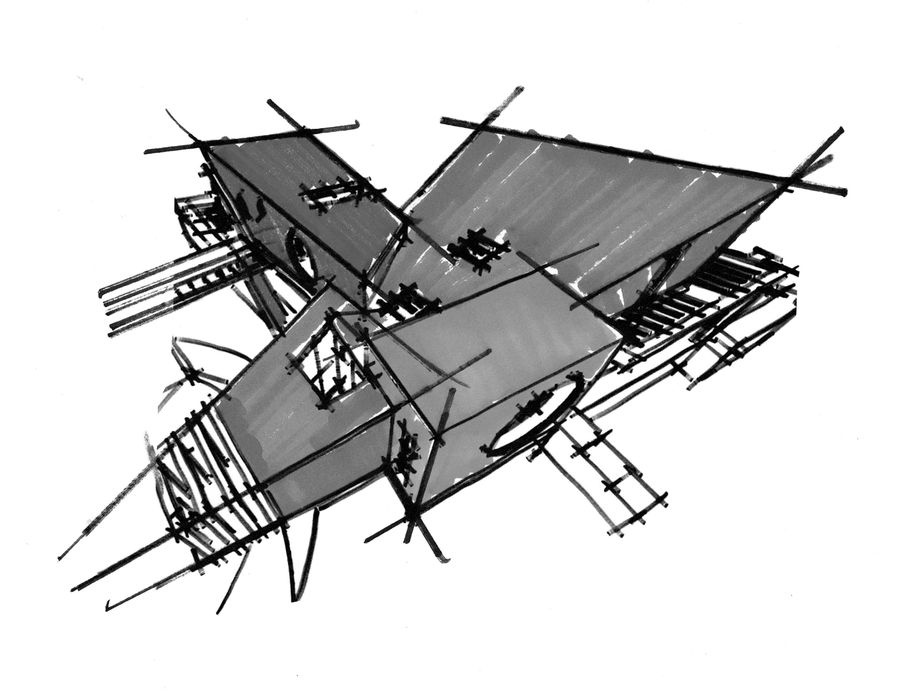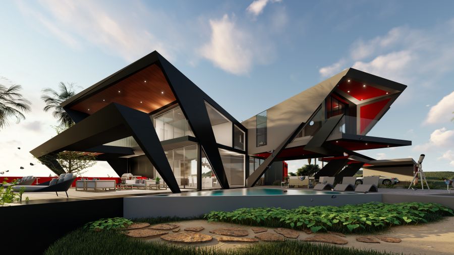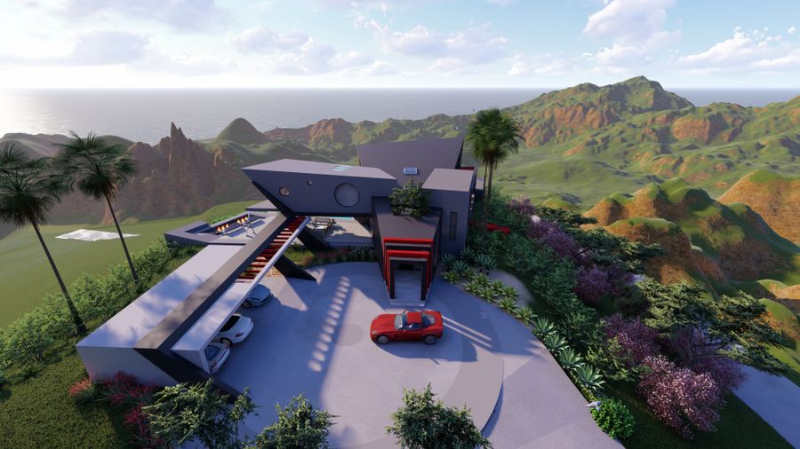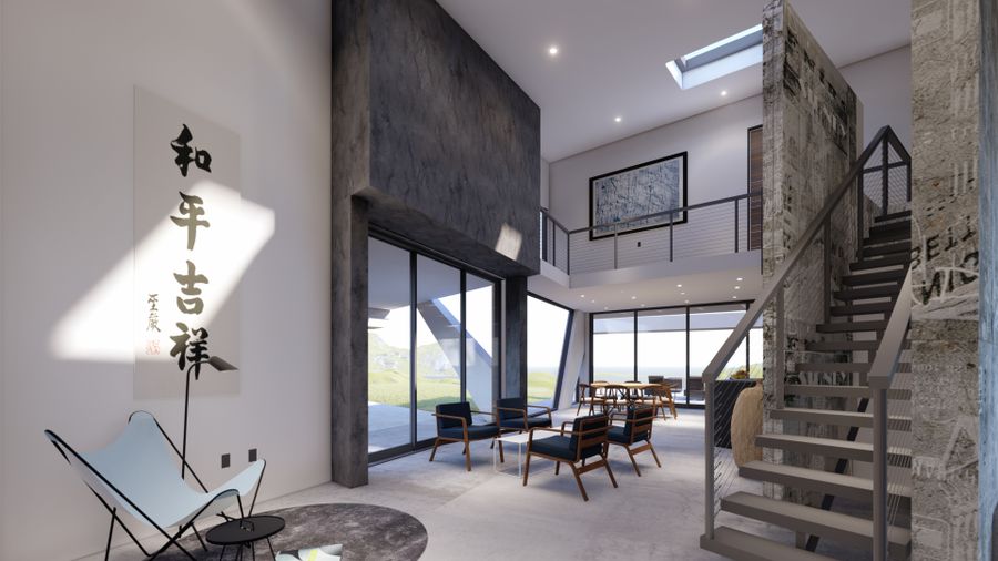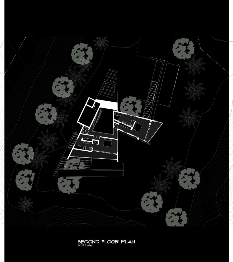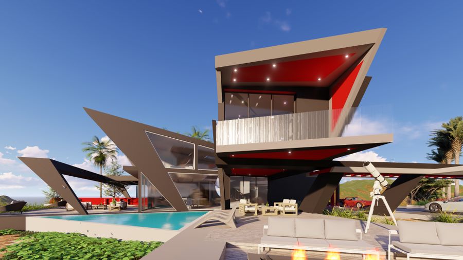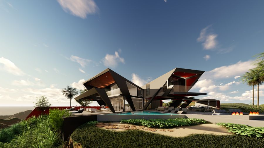 Conceptually, Apel Design wanted to create the notion that the architecture of building continues beyond. In a sense, the forms flow throughout and never stop. The architecture forms emerge from the ground, extends to the horizon and divides into two beautiful irregular volumetric elements as if the architecture was slicing the space, emphasizing the gorgeous views of the Malibu mountains and the Pacific Ocean. The bird-like building program also incorporates the ideas of flow and continuation; the first level proposes an open floor plan with a glass facade that opens up the space to a beautiful deck and a second floor for bedrooms that are elevated from the ground to again emphasize this notion of flow and lightness.